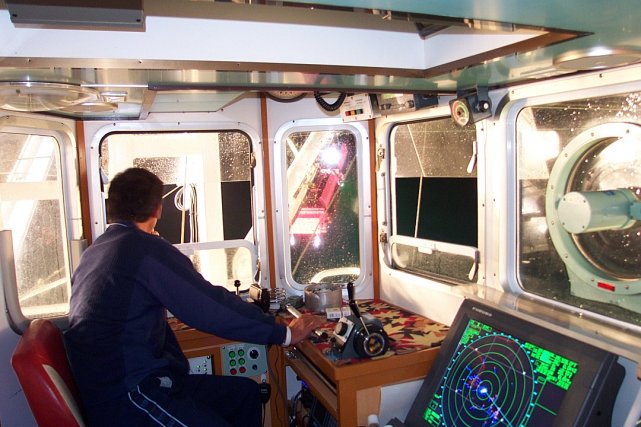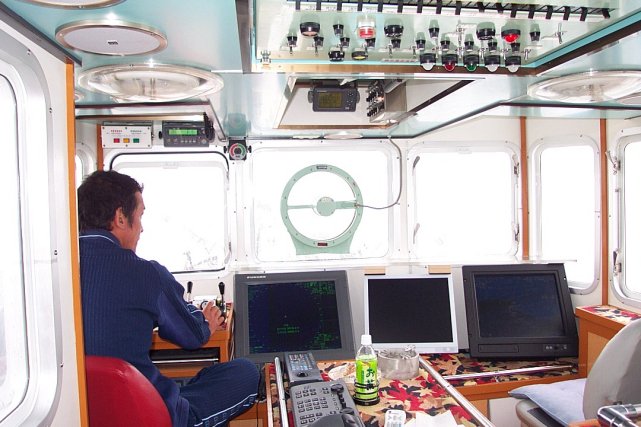 ジェット機のコックピットではありません、 船頭は仲間の無線情報と
