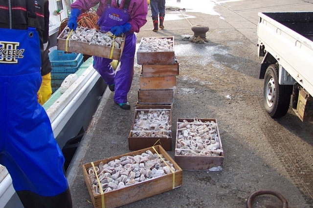 猿払漁組所属 毛がに・ホタテ桁引き兼用船 第二十八 金龍丸 に乗船させて