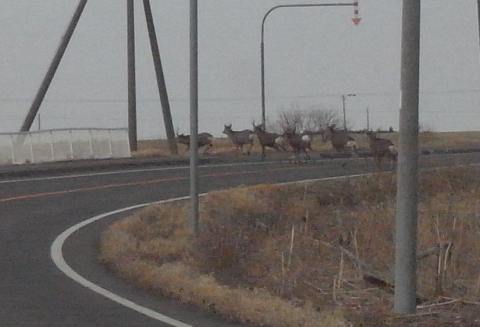 しの際はエゾジカの道路横断にほんと、 気を付けて。