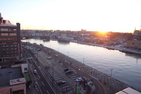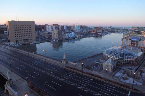東側の非常階段開けたら、 もっと釧路らしい幣舞橋が写るいい