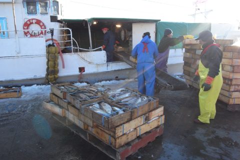 PM3:00、 根室に帰ってきました。 花咲港ではタラの水揚げが朝から続いていた。