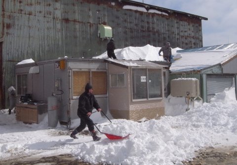 でたなら・・・。 建屋修繕・材料の塩抜き・泥洗いで年内建造作業できず。