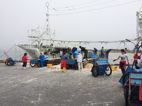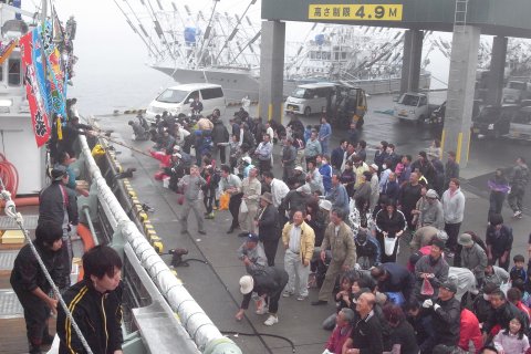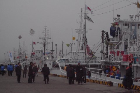 PM1:30頃には全船入港した。 荷揚げはPM2:30とか。
