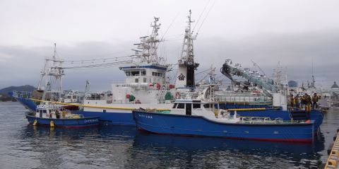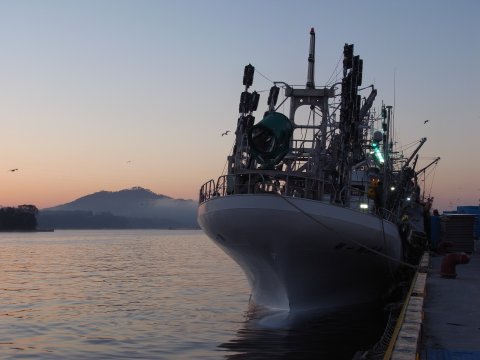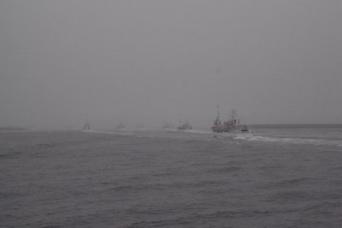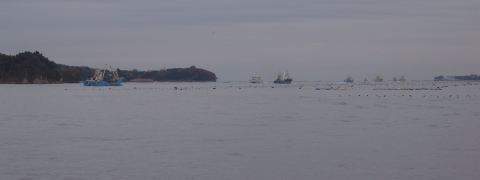 気仙沼港で。 5〜7巻き網船団が一斉出航の写真が取れるチャンスが