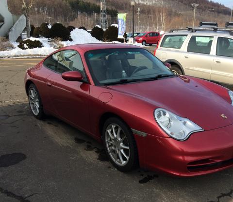 阿寒の丹頂の里、 赤いベレーで温泉の帰りに、 またまたポルシェ。