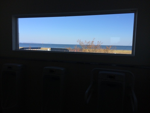 尾岱沼の道の駅のトイレ 。 小便しながらこの景色、