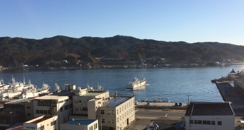 対岸の緑のクレーンがある造船所は宮城県造船です。 ホテル