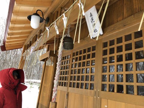 小高い丘をラッセルしお宮さんに到着。 金運
