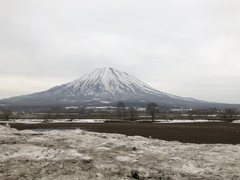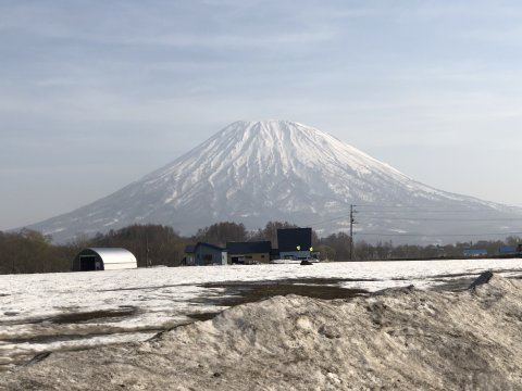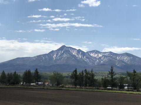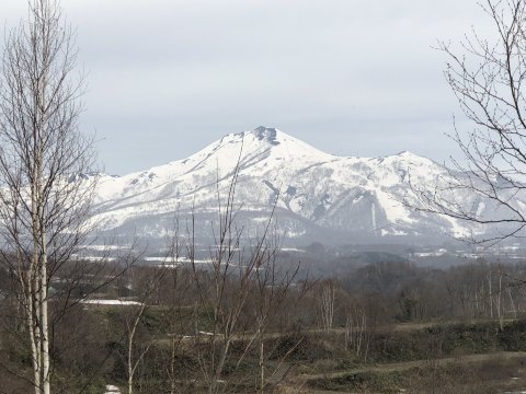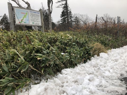 根北峠。雪少ない、 中央の知床連山はそれなりか。