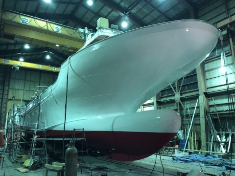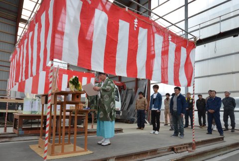 新造船は満旗飾ですね。 進水からの一連は新造船