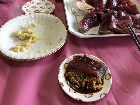 頭しか残しません、 腸、”苦〜イ” これがうまい