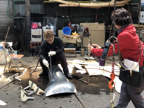員で行います。 それまでに外板を曲げて置きます。