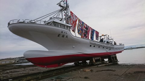 な19gtサンマ船3隻の上架。 不安を止めればちょっ